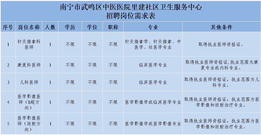 原文標題:2025年南寧市武鳴區里建社區衛生服務中心招聘啟事