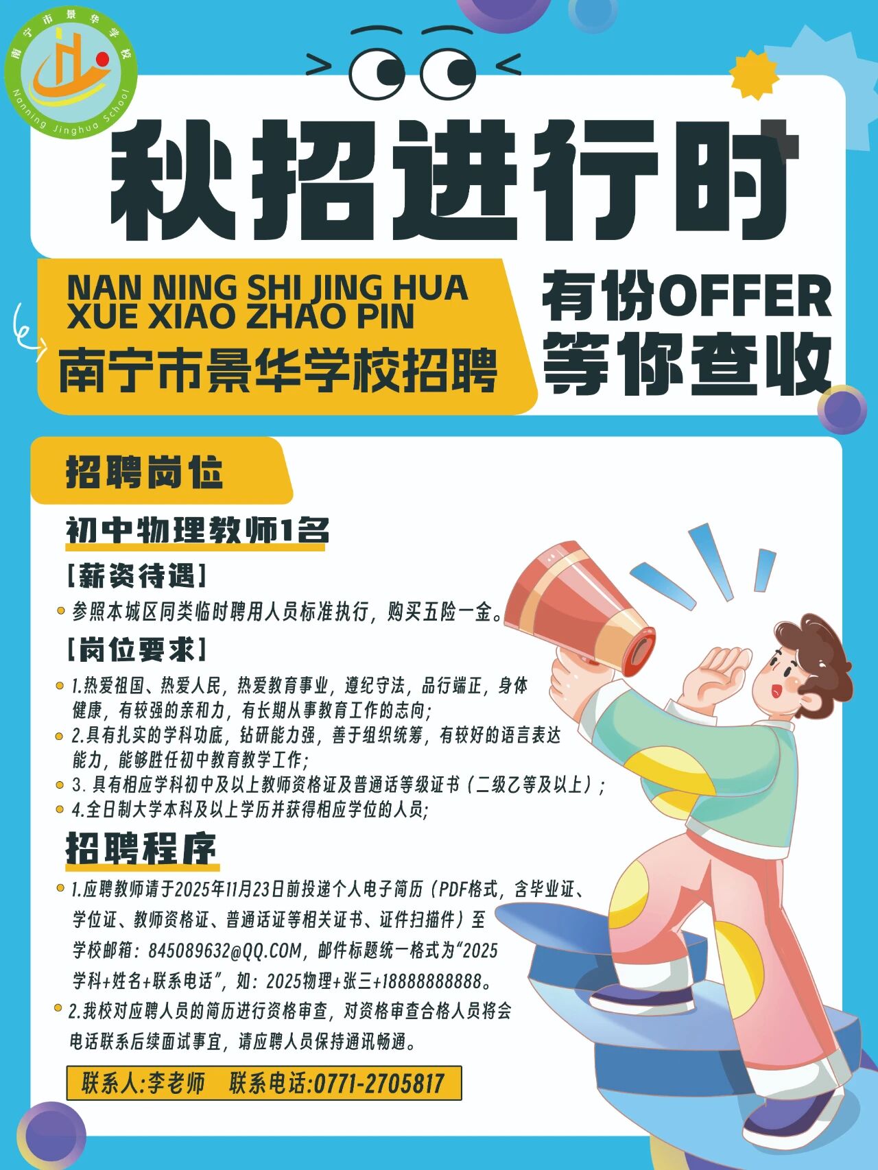 2025年南寧市景華學校招聘初中物理教師1名