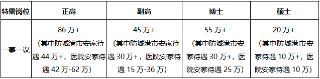 醫院為符合醫院及防城港市引進政策的人才給予人才激勵:待遇如下(稅前):
