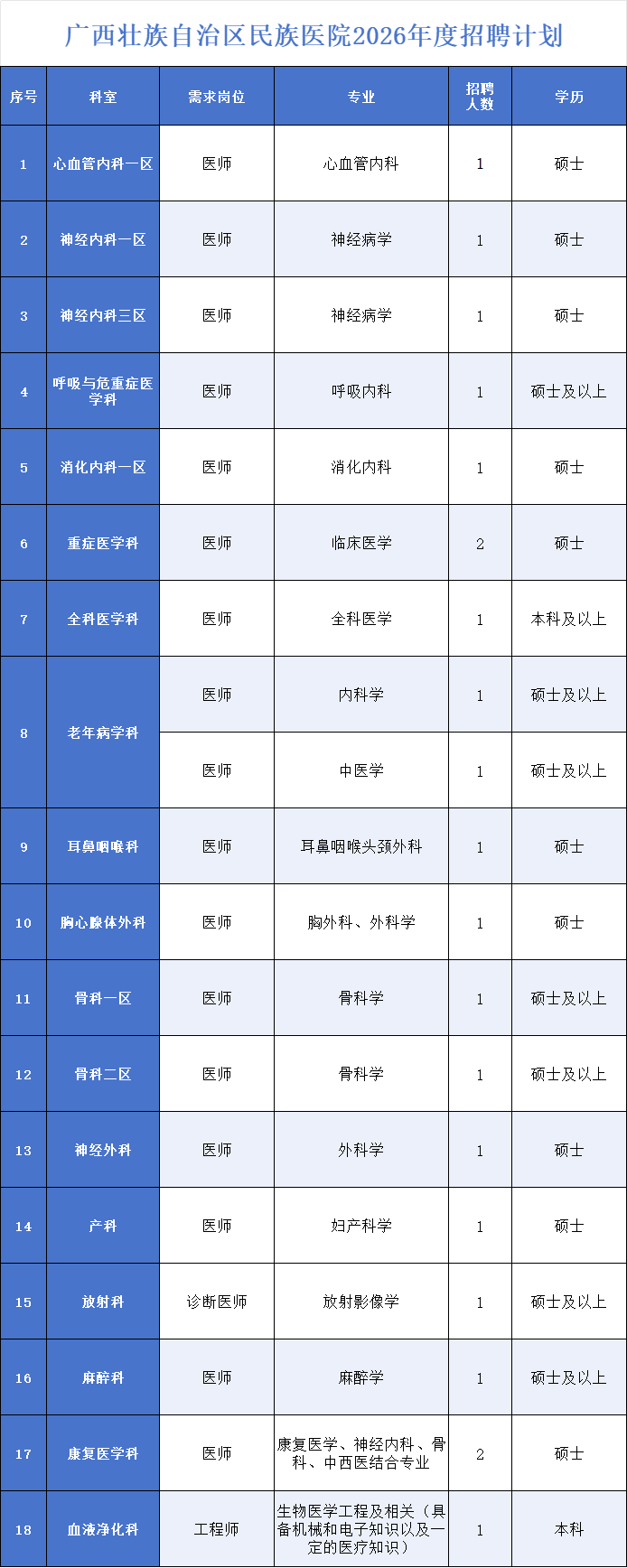 原文標題:2026年廣西壯族自治區民族醫院招聘簡章