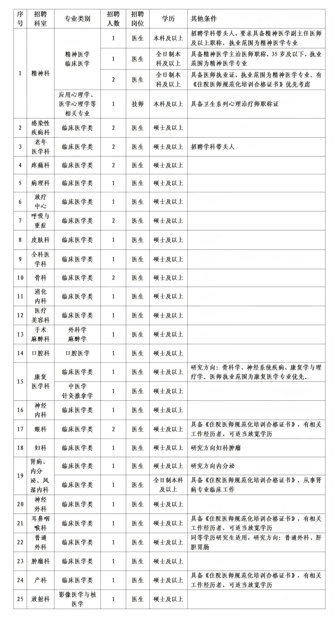 招聘崗位及要求