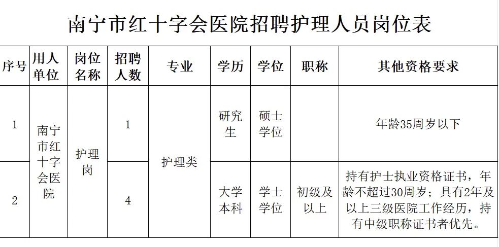 原文標題:2025年南寧市紅十字會醫院招聘護理人員