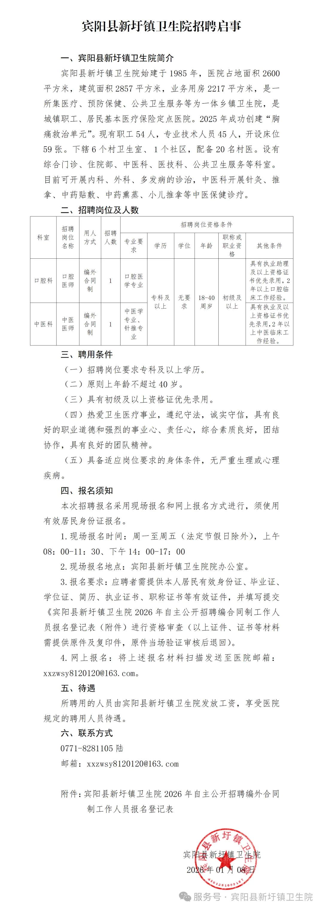 原文標題:2026年賓陽縣新圩鎮衛生院衛生專業技術人員招聘簡介