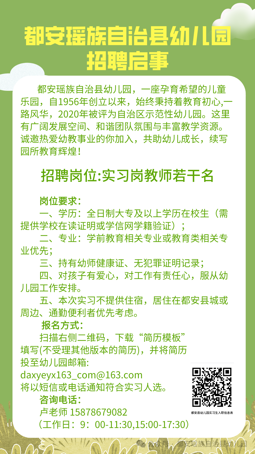 原文標題:都安瑤族自治縣幼兒園實習生招聘啟事