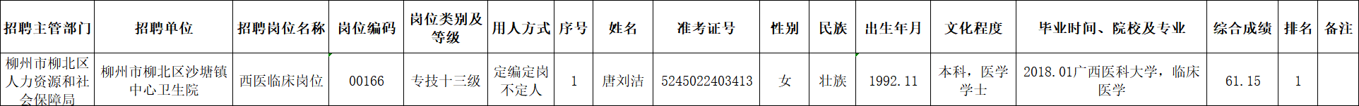 柳北區2025年度下半年事業單位公開考試招聘工作人員擬聘用人選公示(第五批)